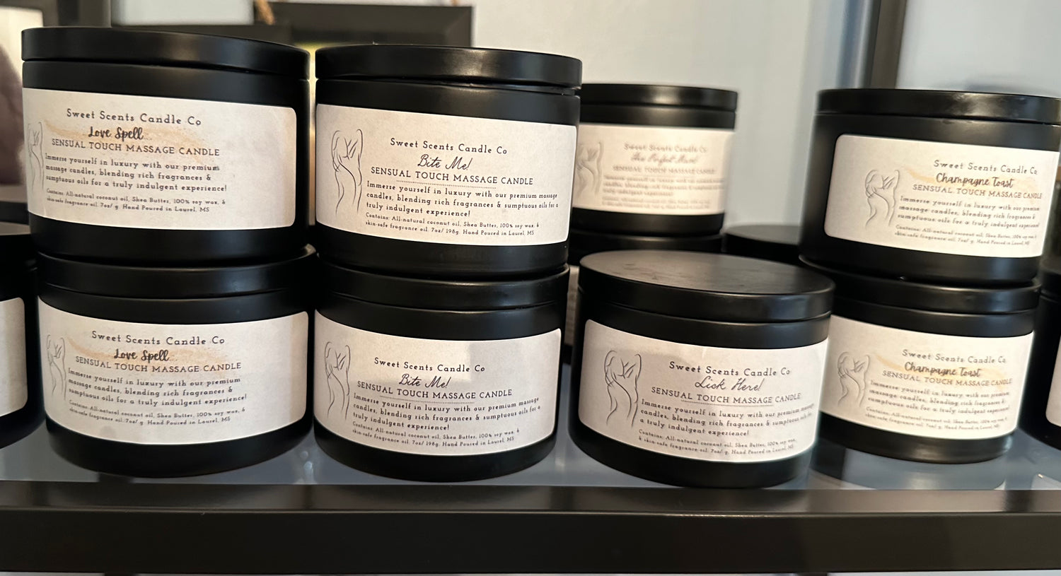 Sensual Touch Massage Candle. Contains coconut oil, shea butter, and fragrance oil.